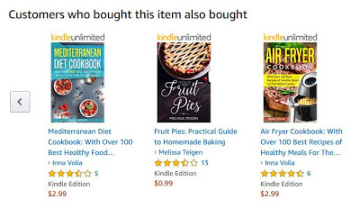 Of course, what I really need are enough sales for my books to show up on their also boughts, so their readers see mine. But that's two steps down the road. At the moment, I'll settle for the first step of booting the cookbooks out of my kitchen.