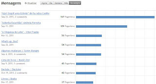 Em relação à leitura, o meu blogue foi criado em Junho com o objectivo de divulgar o meu trabalho, porém depressa evoluiu para algo mais e passou a dar a conhecer os projectos de outros autores também. Desde que me comecei a dedicar igualmente a essa vertente, dei a minha opinião e entrevistei os autores dos seguintes livros: