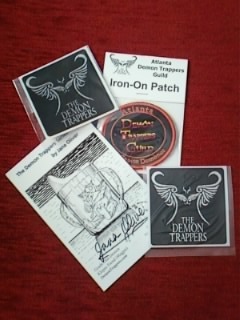 Recebi na passada sexta-feira uma carta da escritora Jana Oliver, cujo conteúdo gostaria de partilhar convosco. O envelope trazia algum material promocional da série "The Demon Trappers", nomeadamente dois autocolantes espectaculares com o logótipo da saga (que me faz lembrar uma tatuagem), um postal autografado e um emblema que vai direitinho para o capote do traje universitário da minha irmã.