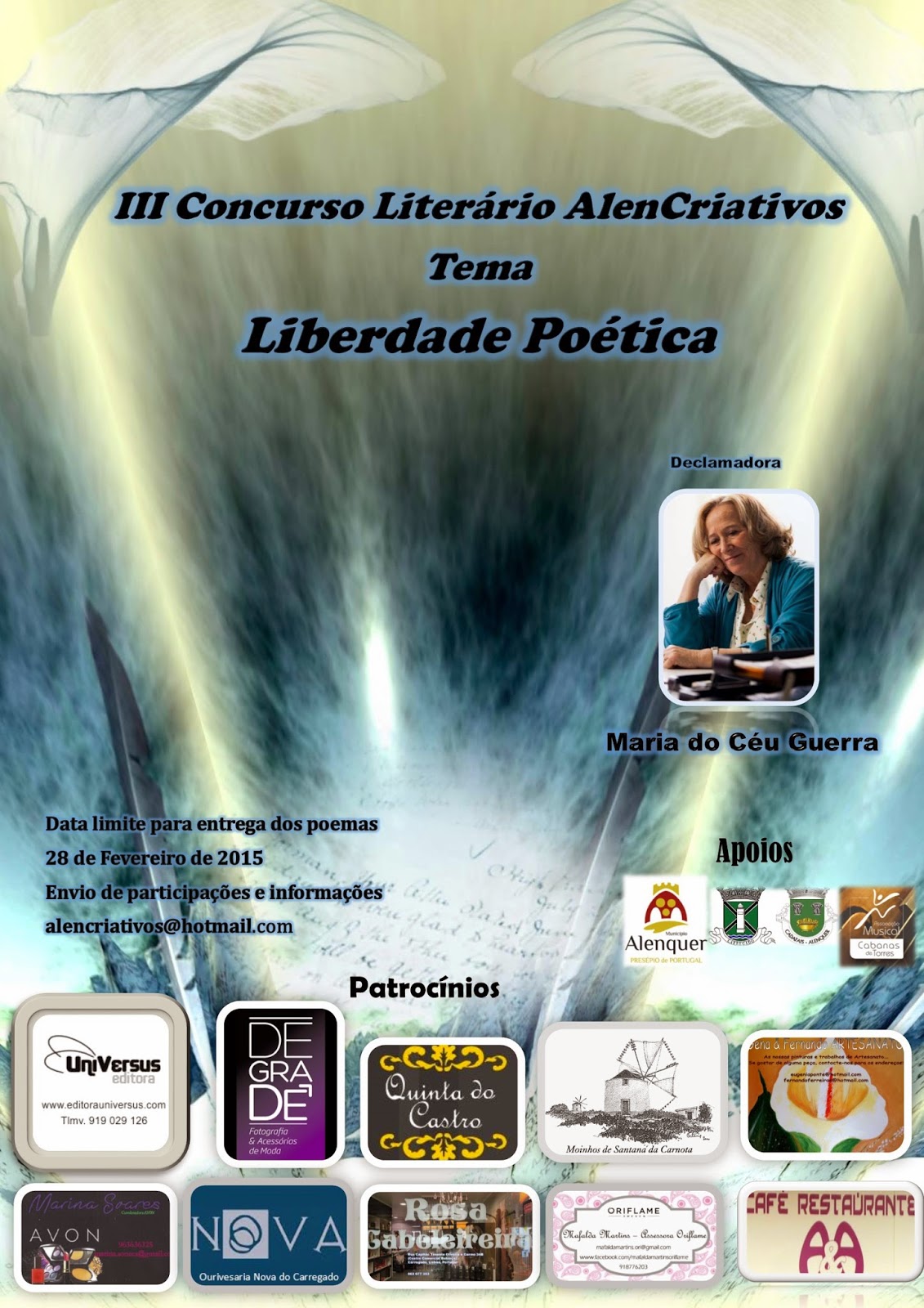 Está a decorrer o III Concurso Literário AlenCriativos, um concurso literário de âmbito nacional promovido pelo grupo AlenCriativos, com organização de Ana Coelho e Maria Eugénia Ponte, com o apoio da Câmara Municipal de Alenquer - Pelouro da Cultura e da Juventude e Junta de Freguesia do Carregado e Cadafais.