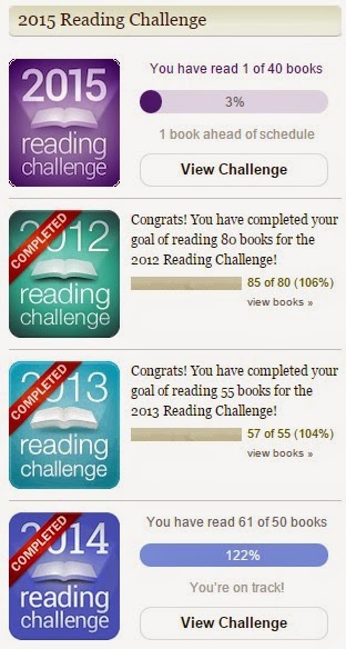 Olá!Já defini o meu desafio Goodreads para 2015. Tinha pensado em manter os 50 livros como meta, mas como este ano estou à espera de ter ainda mais trabalho, terei menos tempo para ler; assim, reduzi para 40 o número de obras que me proponho a ler em 2015. Caso veja que estou a ler a bom ritmo, então aumentarei para 50. E vocês, quantos livros acham que vão ler este ano? ;-)