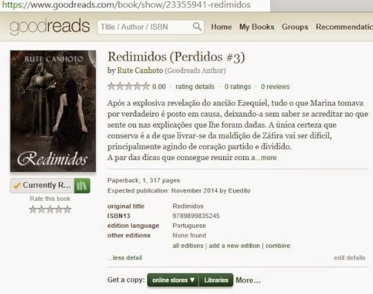 "Redimidos", o terceiro volume da série "Perdidos", também já tem ficha criada no Goodreads. A mesma pode ser consultada através do link: https://www.goodreads.com/book/show/2...