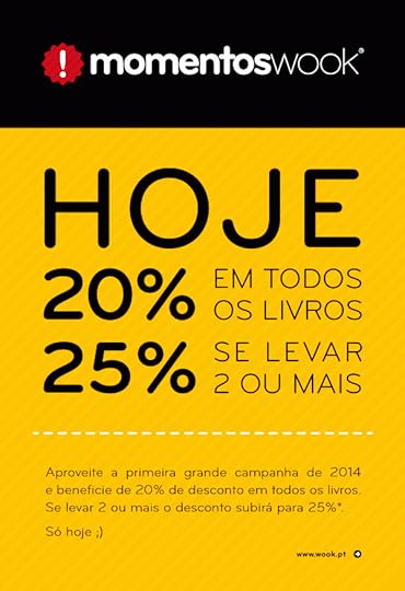 www.wook.pt *Campanha de promoção do livro e incentivo à leitura, válida no dia 29 de janeiro, no horário de Portugal continental, em todos os livros exceto eBooks, livros escolares e técnicos. Nos livros editados há menos de 18 meses aplicar-se-á apenas o desconto de 20% que é o máximo permitido pela Lei para esta campanha. Campanha não acumulável com outros descontos e/ou promoções, incluindo a utilização de saldo PPL.