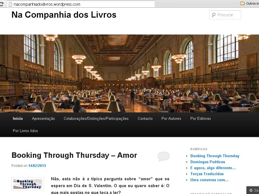 OI! QUANDO CRIASTE O TEU BLOGUE E O QUE TE MOTIVOU A FAZÊ-LO?Olá, Rute! Ora bem, o primeiro post com opinião sobre livros apareceu a 15 de abril de 2008. Vai fazer 5 anos, portanto. No entanto, não esteve sempre na mesma plataforma. Começou no Blogspot, mas "mudou-se" para onde está, no Wordpress, há praticamente 1 ano. O primeiro objetivo do blogue literário foi retirar as opiniões a livros do blogue pessoal que mantinha na altura. Separar as águas, passe a expressão. Com o passar do tempo, começou a assumir o seu verdadeiro papel: um espaço onde me afirmava como mais uma a remar contra a maré da moda do "ah, não gosto de ler", um registo das minhas leituras e um ponto de encontro e debate com outros/as leitores/as que, como eu, gostam de falar sobre estes nossos queridos amigos, os livros.