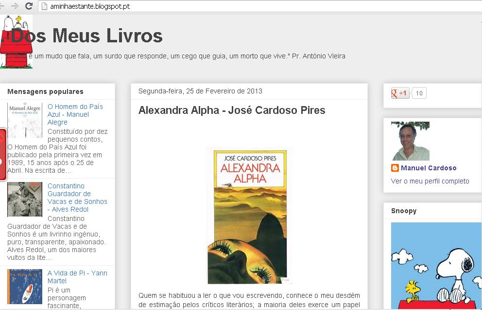 FALA-NOS UM POUCO SOBRE O TEU BLOGUE.A mais-valia do meu blogue é que tenho ali sintetizado tudo o que li em oito anos. É uma coisa muito egocêntrica, portanto. Se as pessoas o usam com proveito, melhor ainda, junta-se o útil ao agradável.