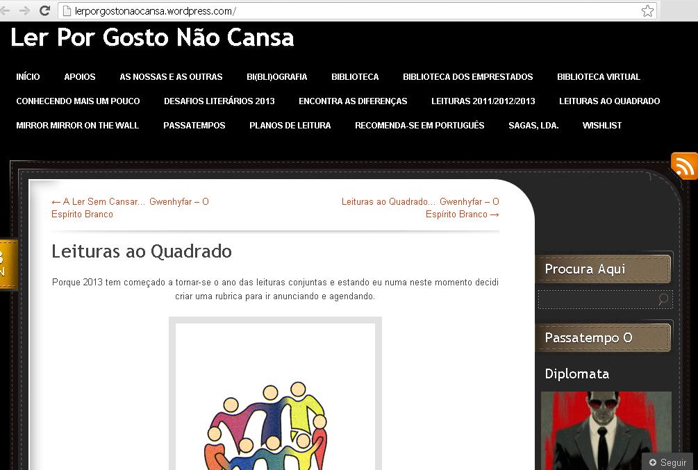 Nome: Ler Por Gosto Não Cansa Administradora: Inês SantosLink: http://lerporgostonaocansa.wordpress.com/