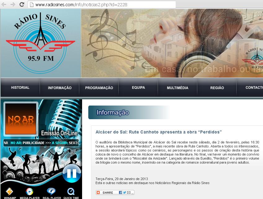 Mudando de assunto... Amanhã (5ª feira, dia 7) não percam o programa "Praça da Alegria", na RTP1, entre as 10h e as 13h. O concelho de Alcácer vai estar em destaque e eu vou ser entrevistada a propósito do meu livro "Perdidos" ;-D Estou contente, lol!