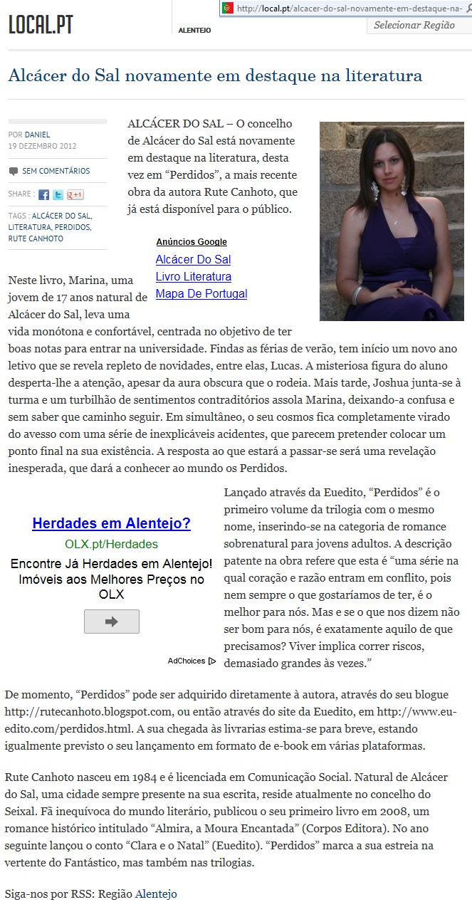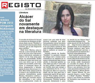 Olá! Na próxima segunda-feira, dia 7, vou estar em direto na rubrica "Roda Viva", na Rádio MiraSado, a falar sobre o meu livro "Perdidos". Sintonizem 93.9 FM entre as 16h e as 17h ;-)