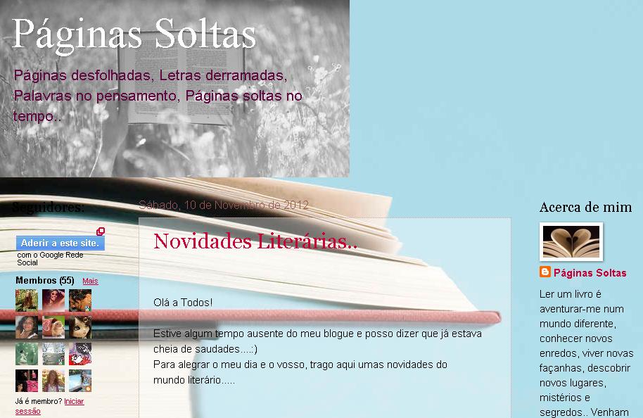 Nome: Páginas SoltasAdministradora: Carolina CostaLink: http://paginassoltas-cc.blogspot.pt/