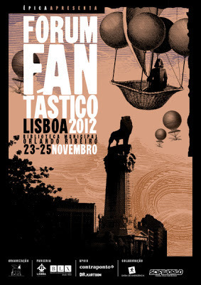 Fórum Fantástico 2012 (7ª Edição)De 23 a 25 de NovembroBiblioteca Municipal Orlando RibeiroLisboa*Sexta, 23 de Novembro15:00 – Abertura do FF2012.15:30 – WorldCon 2014, LondresAntevisão e projectos, apresentado por Rogério Ribeiro.16:00 – Workshop de Escrita Criativa Fantástica Trëma (I)Lançamento da iniciativa por Luís Filipe Silva e Rogério Ribeiro (coordenadores).17:00 – Intervalo.17:30 – Ilustração FantásticaPainel e apresentações com Ana Gomes e Luís Melo.18:00 – Criar SciFiPainel e apresentações com António de Macedo, João Leitão, Filipe Homem Fonseca e João Alves.*Sábado, 24 de Novembro11:00 – Workshop de Escrita Criativa Fantástica Trëma (II)Com João Barreiros, Madalena Santos e Bruno Martins Soares.12:30 – Intervalo.14:20 – Lançamento TrëmaEstreia exclusiva da nova publicação Trëma (org. Rogério Ribeiro).14:40 – Lançamento LusitâniaEstreia exclusiva da nova publicação Lusitânia (org. Carlos Silva).15:00 – Movimento VaporpunkVisão da primeira EuroSteamCon Porto (Set. 2012), e apresentação do Almanaque Steampunk, com Joana Lima, Sofia Romualdo, Rogério Ribeiro, Joana Maltez e André Nóbrega.15:30 – Mitos e Fantasmas na ficção nacionalPainel com David Rebordão, Cláudio Jordão, Nélson Martins e Vanessa Fidalgo.16:15 – O Conto do VentoExibição da curta-metragem premiada, de Cláudio Jordão e Nélson Martins.16:30 – IntervaloCom sessão de autógrafos.17:00 – Sugestões de Livros e JogosApresentação com João Barreiros, Artur Coelho e João Campos.17:30 – À conversa com o Sr. MonstroLançamento exclusivo de “Sr. Monstro” (Ed. Contraponto), de Dan Wells, com a presença do autor.18:00 – Lisboa no ano 2000, o retrofuturo electropunkLançamento exclusivo da antologia “Lisboa no ano 2000” (Ed. Saída de Emergência), organização de João Barreiros.18:30 – Sessão de autógrafos.*Domingo, 25 de Novembro11:00 – Workshop de Escrita Criativa Fantástica Trëma (III)Com Dan Wells, Mário de Freitas e Luís Filipe Silva.12:30 – Intervalo.14:30 – Futuros Imperfeitos – Obras esquecidas da Ficção Científica Portuguesa do Séc. XXApresentação por Luís Filipe Silva.15:00 – Cibercultura e Ficção.Lançamento exclusivo da antologia de textos “Cibercultura e Ficção” (Ed. Documenta), organizada por Jorge Martins Rosa no âmbito do projecto “A Ficção e as Raízes da Cibercultura”.15:30 – Ficções além-géneroPainel com Afonso Cruz, Pedro Guilherme Moreira e João Morales (moderador).16:30 – IntervaloCom sessão de autógrafos.17:00 – Banda-desenhadaPainel com Nuno Duarte, Joana Afonso, Jorge Oliveira e João Lameiras (moderador).17:45 – Super-Heróis à PortuguesaPainel com José de Matos-Cruz, Daniel Maia, João Leitão, Nuno Amado e Luís Filipe Silva.18:30 – Capitão FalcãoA encerrar o FF2012, exibição do episódio-piloto de “Capitão Falcão”, de João Leitão.*Todos os dias: Durante o evento estará disponível uma Feira do Livro Fantástico, gerida pela livraria Dr. Kartoon, assim como uma banca da editora Saída de Emergência e uma banca de jogos da Runadrake.Organização: Épica/Rogério Ribeiro/Safaa Dib/João Campos.Aviso: O programa agora divulgado está sujeito a correcções e adições até ao evento, portanto aconselhamos a consulta frequente do nosso blog. Apelamos a todos que divulguem o evento e o presente programa, mas juntando sempre o nosso endereço para possíveis actualizações.