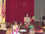 We also had two guest readers dressed like women in the 1800′s. They read stories set in that time period as well. The children heard musicians play music on instruments used in the 1800′s. The high school drama club performed a skit of my book. I had tears in my eyes watching one of my former third grade students play the part of the schoolmaster from my story.