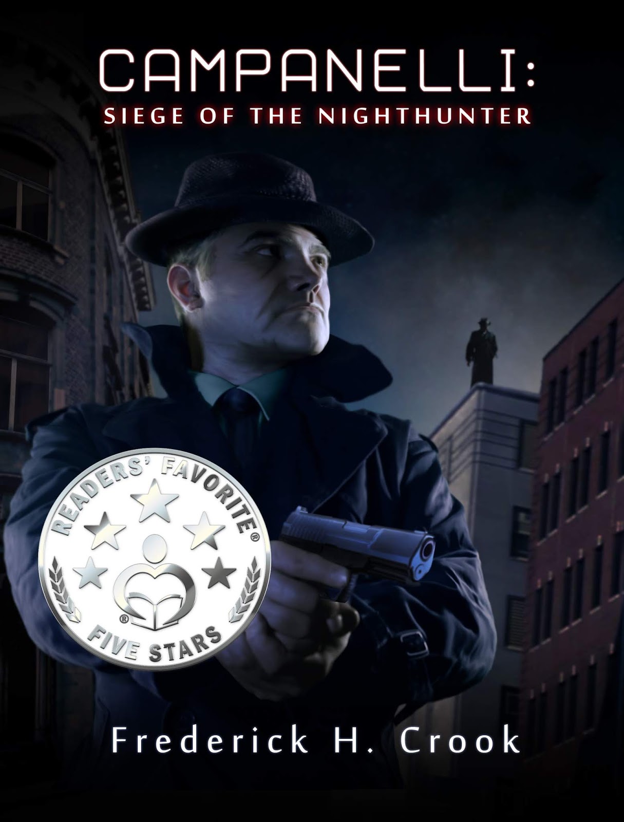 Frederick H. Crook appears today with his tales Campanelli Sentinel and Campanelli Siege of the Night Hunter. This fantastic series features a blind Chicago police detective, doing his best to enforce the law in a post-apocalyptic world.