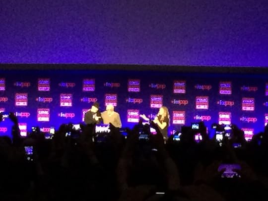 This was the best I could zoom in with my iPhone. I had to sit in the back. (L to R: Frank Miller, Stan Lee, the moderator)