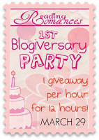 Reading Romances First Blogiversary Party is finally here! Big congrats to those guys on their first anniversary. Hurrah!
