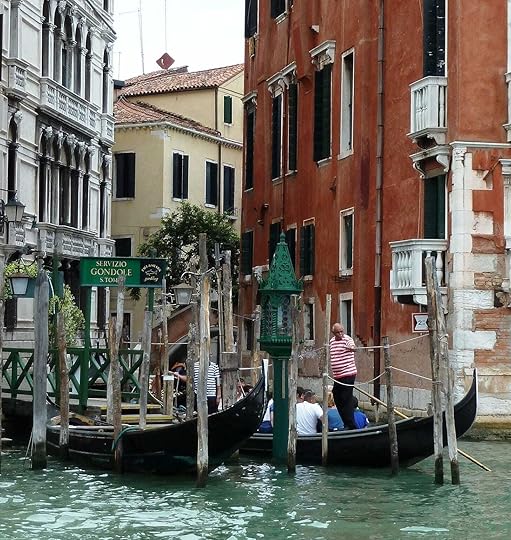 Abxbay, CC BY-SA 3.0 , via Wikimedia CommonsLooking across the Grand Canal toward the Rialto fish market, I could see my wife standing in the center of the gondola holding a full sack of groceries in each hand, with our dog standing by her side. The fifty cents she paid for herself and fifty cents for the dog were well worth the price. With only three bridges crossing the canal, it would have been a long walk home otherwise.