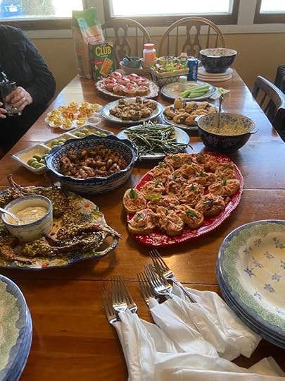 HH and I give an Oscar party every year. Our daughter comes to help me cook the food, and D.P. Reisig sends decorations to put up. M.L. Rigdon/Julia Donner brings her famous deviled eggs and this year, she brought guacamole (which I love). We all glam up a little and have a good time.