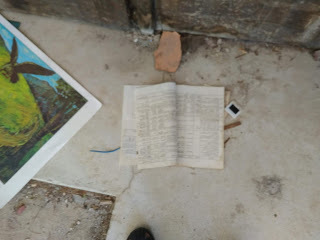 Това печатно копие се въргаляше на метър в страни от плочата. Само се наведох да го снимам. Не смеех да докосна нищо, защото имах чувството, че съм на местопрестъпление и ще компрометирам улики. И нещо повече: с едно докосване ще повредя...разрушеното.