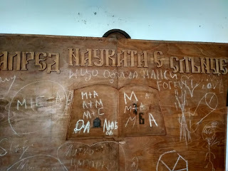 Една по-голяма сграда между накацалите по стръмнините къщички привлече погледа ни, изкачихме стълбите и разбрахме, че това е училище. Или нещо, което някога е било училище. И то не какво да е училище.