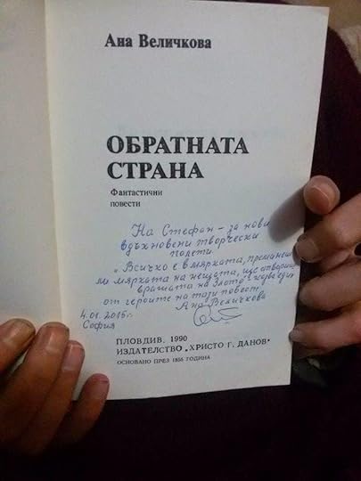 Не знам откъде може да се намери „Обратната страна”, най-вероятно в библиотеките я има. При късмет и на „Славейков”. Ще се повторя: не знам изобщо могат ли да се открият по книжарниците книгите на Ана Величкова. Ще преглътна гнева, който ме обзе докато написах горните два реда. Ще го потуша, в името на ценностите за които иде реч в книгите на Ана Величкова. Но тя не е лигава телевизионна звезда, че да са изложени книгите й на всяка книжарница и чаршия, и да са сред най-продаваните книги за годината в България, а една от знатните дами на българската фантастика. Творила и вдъхновявала нас следващите поколения вече десетилетия. Истинско щастие е, че въпреки възрастта си е сред нас. Тук във фейсбук. Намерете я. Харесайте страницата й. Може и да не се откриват книгите й по книжарниците, но заслужават да бъдат дори в учебниците. А в страницата ще откриете повече отколкото на пазара.