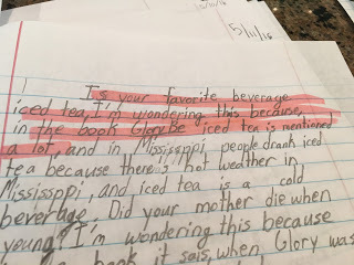 As the school year draws to a close, my mailbox fills with wonderful messages, mostly from students who've read GLORY BE as part of their curriculum. Some illustrate their letters, some hope I'll write back, some are obviously part of an assignment.