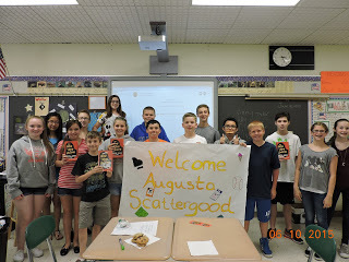 Their teacher tweeted our picture. It always cracks me up to see that large <ME> on the screen. Paused mid-sentence!