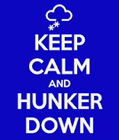 I've seen the word HUNKER used more in the past two weeks than I have in the past two years. (Though, honestly, it never left my vocabulary, but maybe that's a Southern thing.)