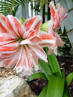 My amaryllis, the one an un-named superhero karate-chopped a while ago, is blooming again.