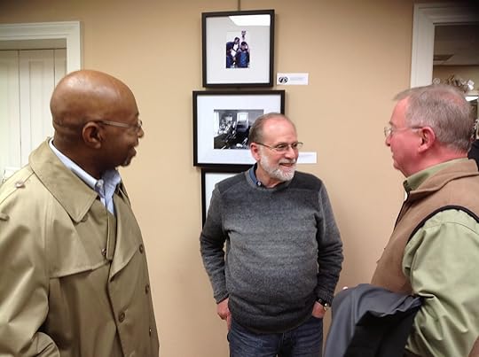 Two of the civil rights workers chatting with my host and brother-in-law. Note the photography exhibit that lined the walls of the Como Library.