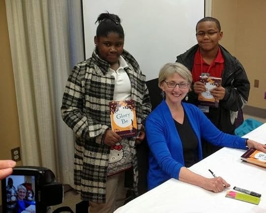 Another favorite moment of the evening was chatting with this young teacher. Anda Weaver's entire class had read GLORY BE. My only disappointment was that there wasn't time for me to visit her school. I am going to try very hard to get back and thank those kids for reading.