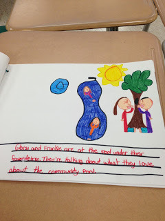 Jordan made an entire book of her pictures, storyboarding the book. Here are two pages from Jordan. I love the pool scene!
