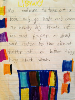 The note on the back says "From Suryea, 2nd grade- I don't know exactly what it means but it's about the library."