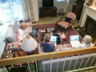 Three of us from my old New Jersey critique group gathered to master Pinterest. We all had Pinterest accounts but weren't sure how best to use them. Book stuff? House stuff? Recipes?