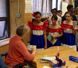 Yes, it's June. It was warm in New Jersey. Carver School was celebrating Multi-Cultural Day with a big assembly. And some of the kids left early for a field trip to the Intrepid. A lot happens in this school. And yet the teachers had managed to share the book in class and teach their kids a lot about the 1960s. Every one of the 125 5th and 6th graders were beautifully prepared, well-read, and brilliant. I'm sure of it.
