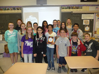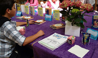 While in New Jersey, I also visited the awesome After School Book Group at the Christa McAuliffe Middle School in Jackson Township. What great kids! Here's the table. Decorated for the occasion.