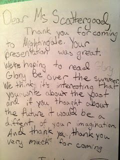 And yesterday, as I was leaving the Nightingale Bamford School in NYC where I'd spoken to the 3rd and 4th grade classes, the teacher handed me thank you notes.