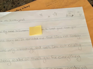 Yesterday, I opened four envelopes filled with letters from third grade classes about my novel, GLORY BE. There were so, so many thoughtful questions.