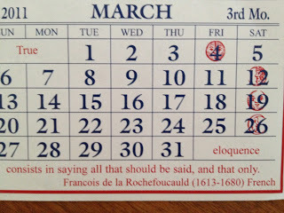 Each year I toss out my previous year's Quaker Motto Calendar and hang the new one over my desk. But before I do that, I reread the quotations and often use the backs of the pages for notes. Here's an old one that seems particularly appropriate for the New Year, for writing, or just for moving ahead in a busy world.