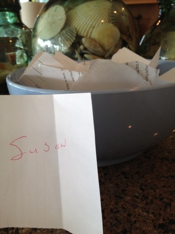 And because I can't resist, here's another of Reagan before the winners were announced. I think that's the letter Glory wrote. And that swimming pool looks three-dimensional!