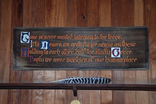 This is hanging in the 100-year-old house where I'm listening to the trees (and also many family members) this weekend.