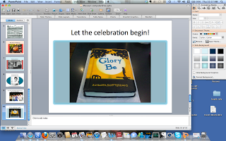 My last slide is the fantabulous GLORY cake! They kept the picture up for the entire rest of the evening. Thank you, Allister!