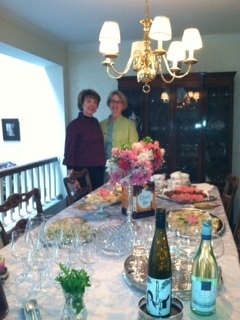 My Mississippi transplant friend served as food consultant. We posed behind the fabulous table. We are blurry, yes, but the table was gorgeous.