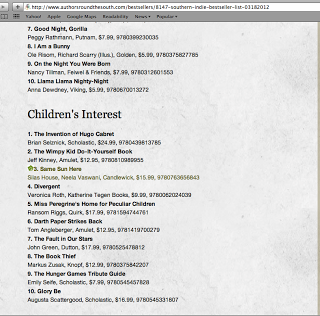Yes, I know I already shared the link on Facebook and shouted the news everywhere. But I can't resist adding the actual screen --via a screenshot of my own computer, cropped-- showing GLORY BE at #10 on the SIBA bestseller list a couple of weeks ago. Go Glory!