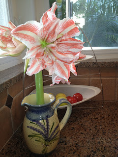 Once upon a time. Okay it was Christmas before last to be specific. My sister-in-law sent us an amaryllis bulb from White Flower Farm. I tucked it into the pot and it grew to be quite beautiful. Inside my house in Florida. I even love the name: Dancing Queen.