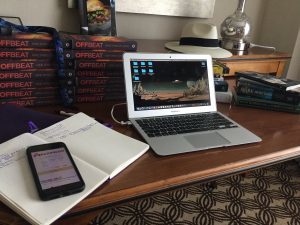 Along with a dozen copies of Off Beat: Nine Spins on Song to dole out. If you want one, give a shout out in the comments or find me during the Con.