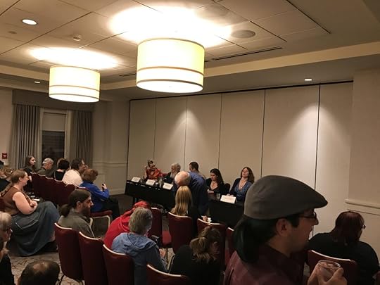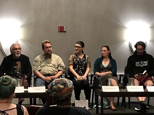 This was a lively panel discussion about sensory range in horror–Josh Malerman’s Birdbox (the story of supernatural entities driving people mad and to suicide if they see them–the reader follows survivors who wear blindfolds) was discussed briefly with more emphasis on Shirley Jackson’s most marvelous The Haunting of Hill House. The point was made that only two senses can bee utilized in movies (sight and sound) while all five can be used in the written narrative. Patrick Susskind’s Perfume: The Story of a Murder and The Ballad of Black Tom by Victor LaValle (Up for a 2017 Shirley Jackson award for best novella) were also referenced.