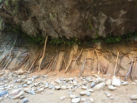 This is a photo I took while hiking in Zion National Park in Utah in 2014. The shot is the beginning of the Narrows hike, previous hikers sometimes left their walking sticks for future hikers. That’s for your reference. The prompt will be the pic and the month of July. Make magic!