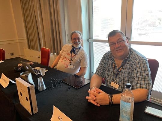 Only two of the Word Count Irregulars were on hand for our second live show, so we amped up the story times to 20ish minutes and had a ball putting on a show in Salon C at the Quincy Marriott on Sunday, 14 July.