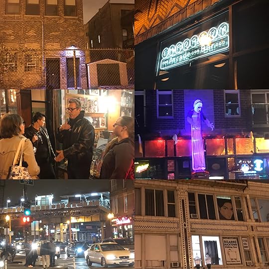 At this point, once fed and watered (and by “water” I mean “Jack Daniels”), it was time for us to take a tour of locales used in Richard’s novel Disintegration. While warm in Chicago for October, rains occasionally dampened the mood (so to speak).