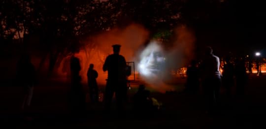 Today I've been reading an essay by T. J. Clark today, Modernism, Postmodernism, and Steam (published in October, Vol. 100, Obsolescence, Spring 2002, pp.154-174), in which Clark brought up Tony Oursler (b. 1957, American) and his Robert Morris-influenced projections of faces onto steam (and trees, apparently). The visual connection to Rist—projections into darkness—is clearly there in my mind, and both are equally bizarre image-makers.