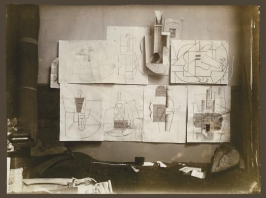 Pablo Picasso. Installation in the artist's studio at 242, boulevard Raspail Paris, December 9, 1912, or later. Gelatin silver print, 3 3/8 x 4 1/2" (8.6 x 11.5 cm). Private collection. Photo: Objectif 31. © 2011 Estate of Pablo Picasso/Artists Rights Society (ARS), New York